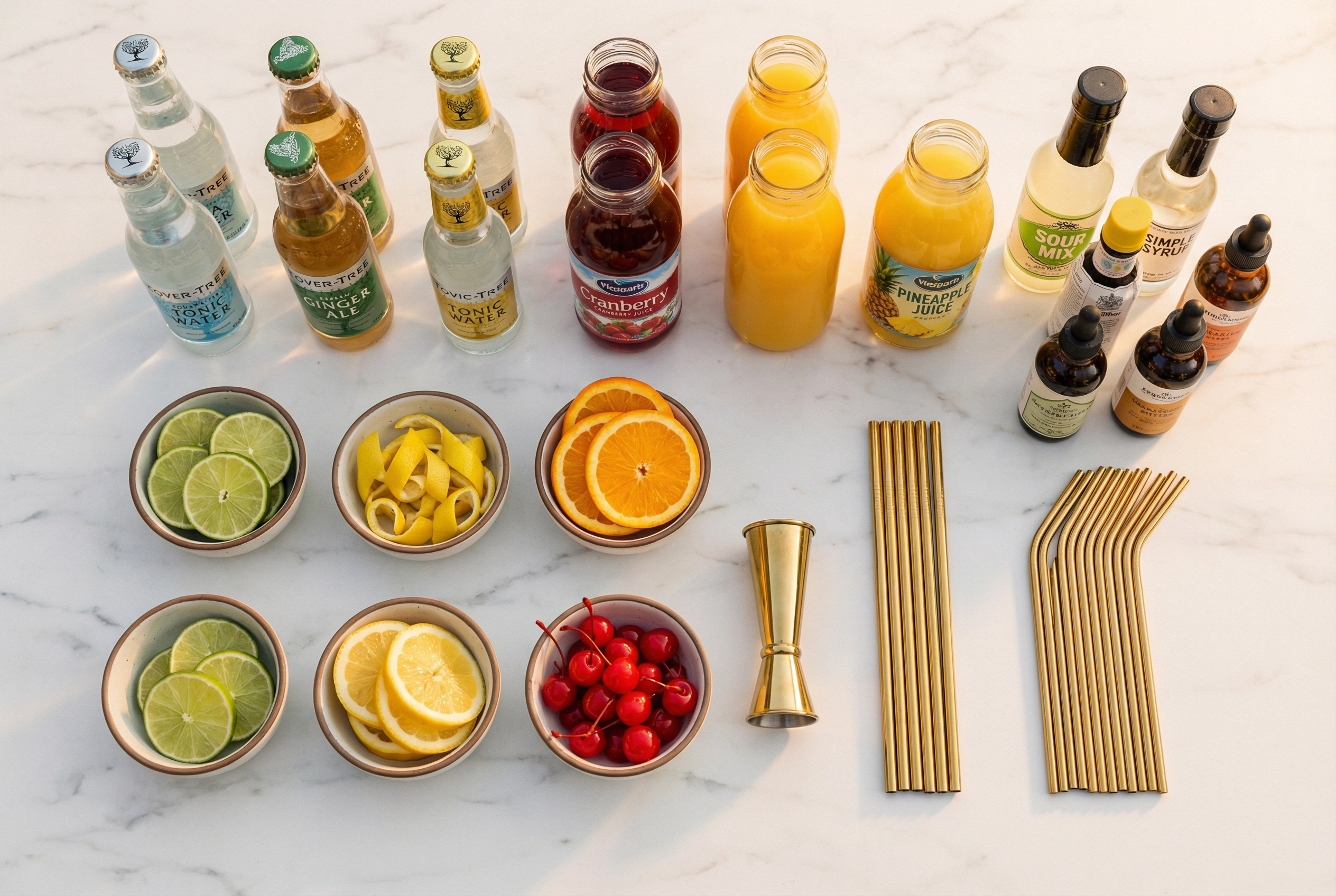 Best for: Hosts who want a truly “no stress” bar where guests can order a full range of cocktails without you sourcing mixers and garnishes.